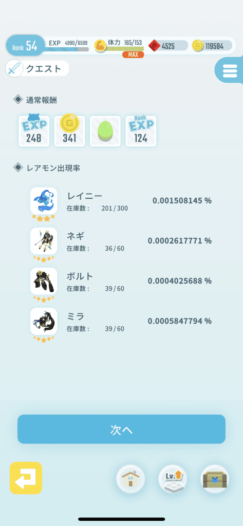 ただ、運よく「レアモン」を入手したもののそれ以降出る気配がありません…。
